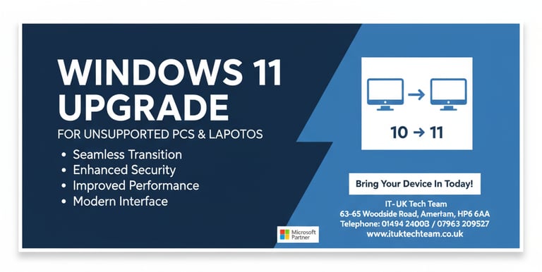 Professional upgrades from Windows 10 to Windows 11 for a wide range of unsupported PCs and laptops.